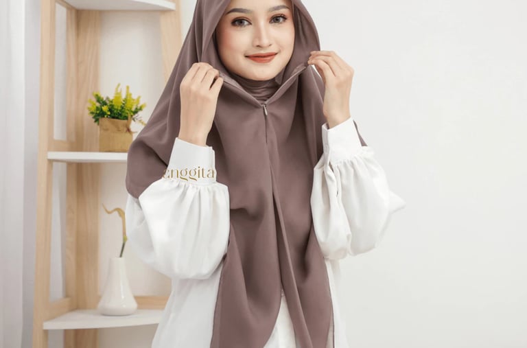 Jilbab Zipper Resleting Premium dengan Bahan Polycotton yang Nyaman dan Praktis.